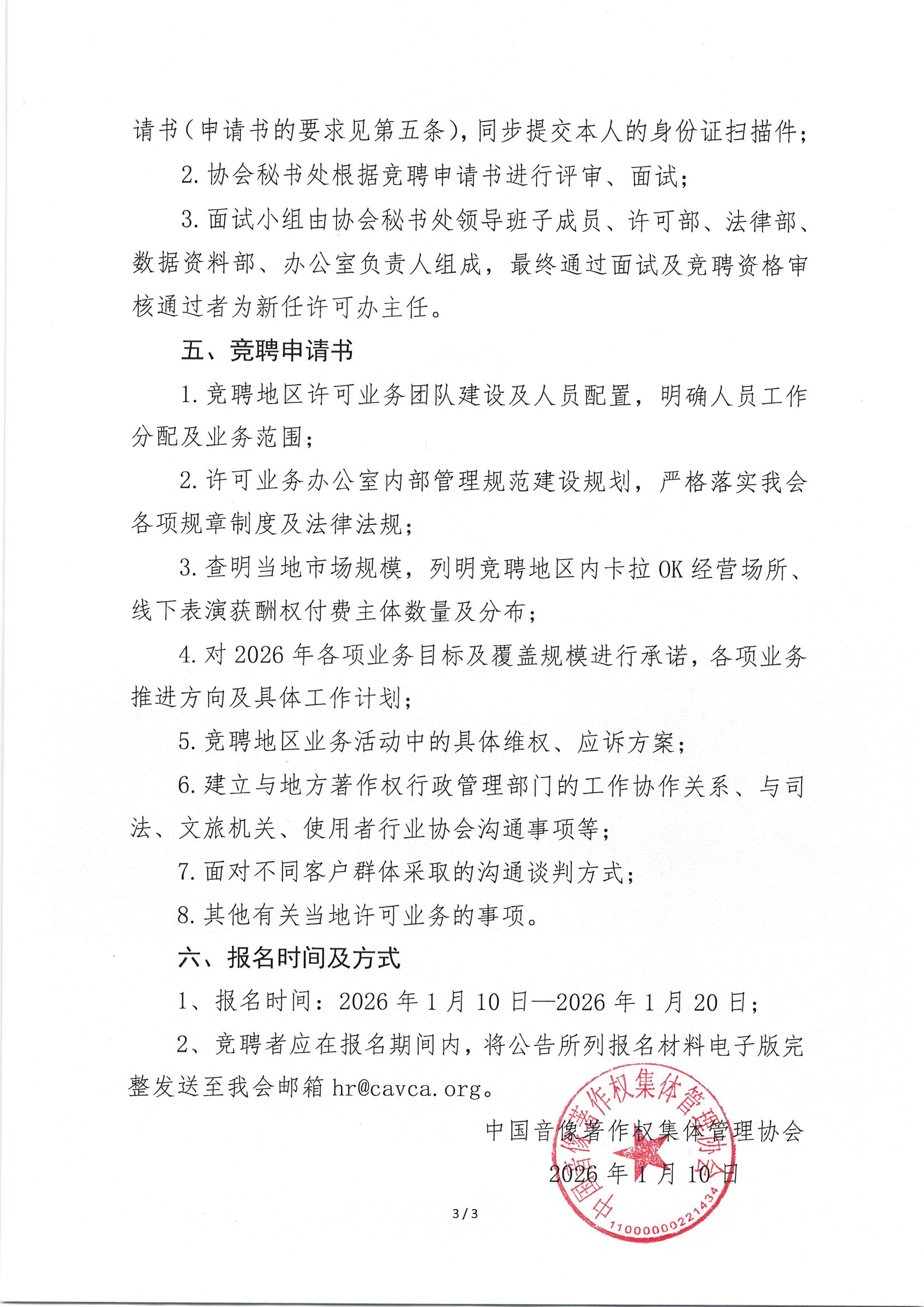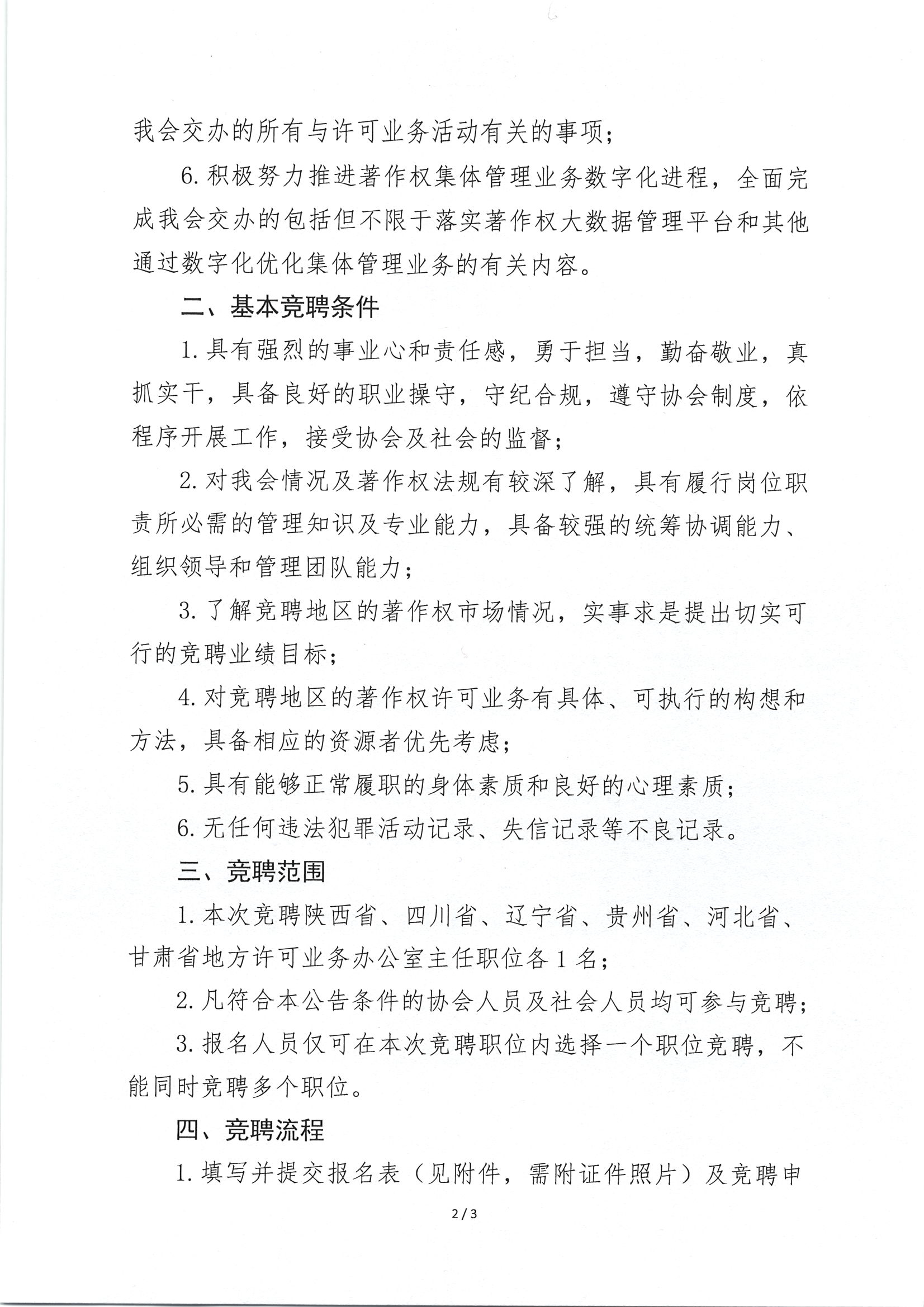 关于2026年中国音像著作权集体管理协会部分地方许可业务办公室主任职位的竞聘公告